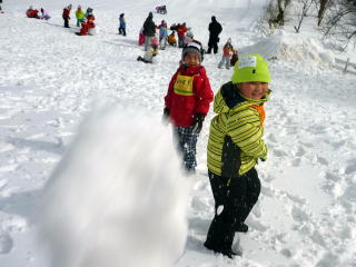 | 雪ぞりのスピードになぜか大爆笑。(5才児) | 雪山の滑り台。 | |